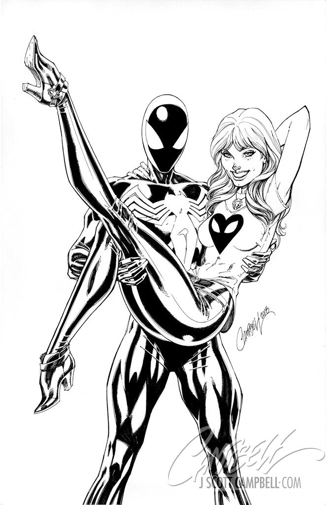 Amazing Spider-Man #2 cover B 'MJ and Spider-Man', an authentic J. Scott Campbell original art piece published by Marvel. The original art piece is inked by J. Scott over his pencils. The piece is signed by the artist.